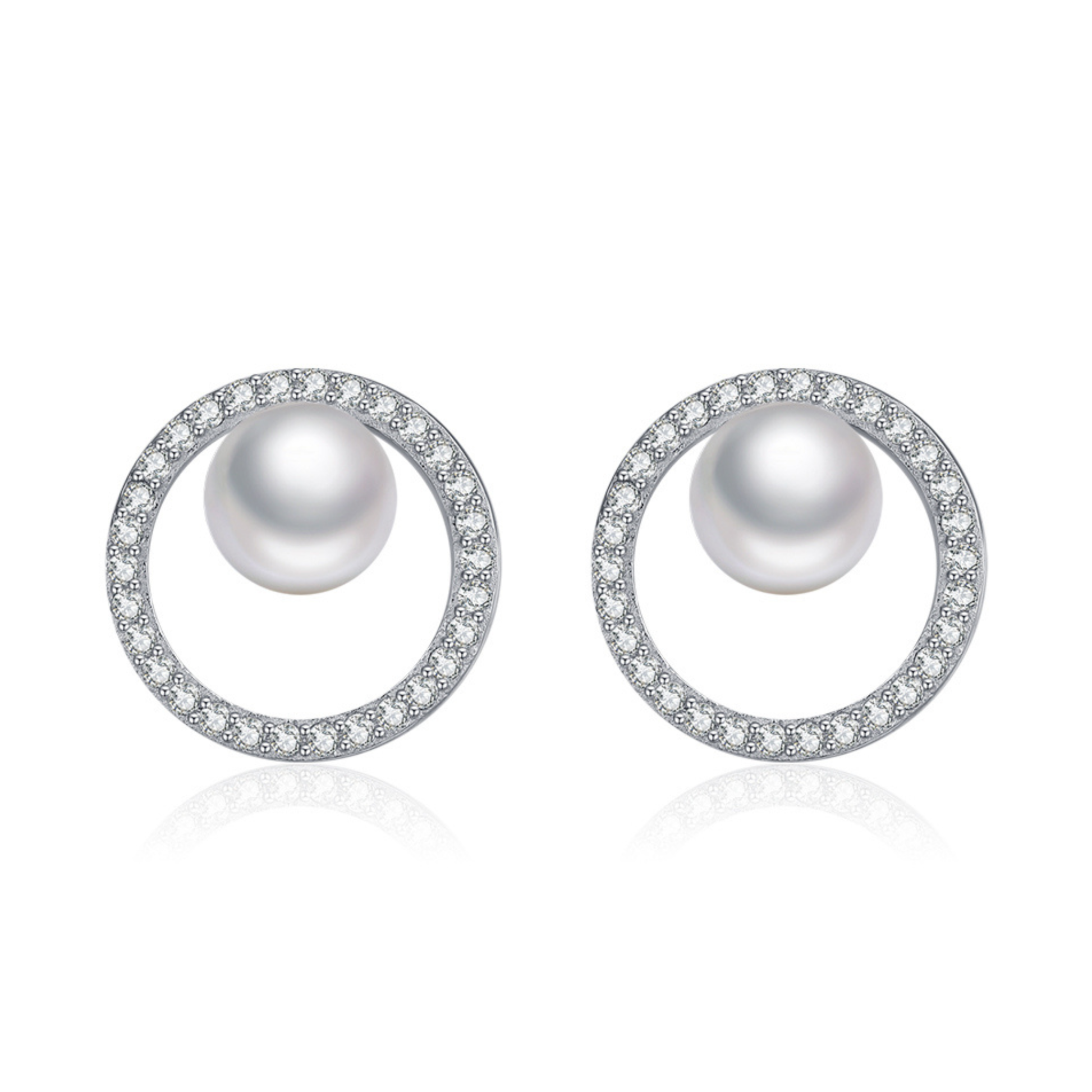 925 Sterling Silver Circle Crystal Pearl Stud Earrings