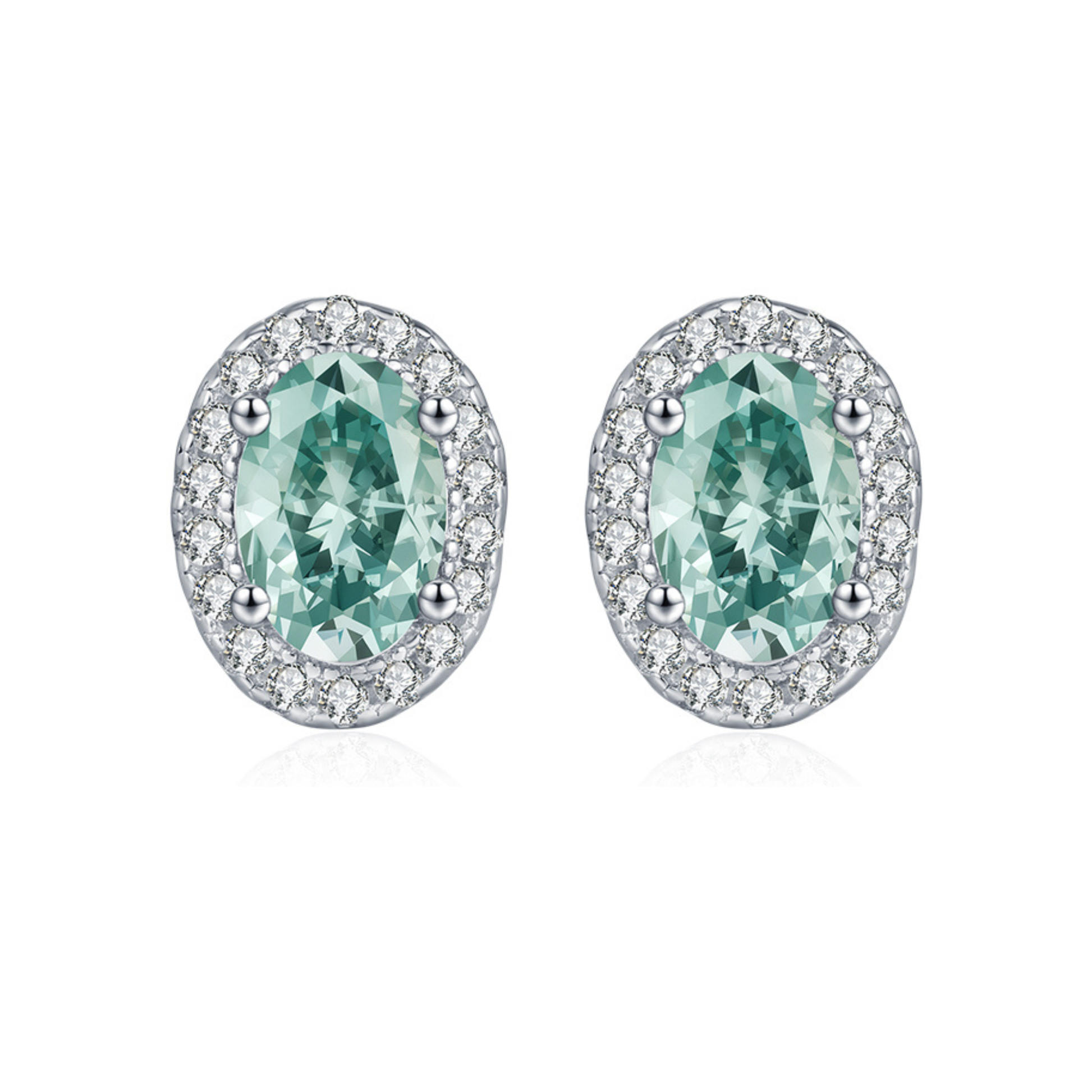 These 1CT D Color Green Moissanite Halo Earrings in 925 Sterling Silver give you an elegant and trendy look. The oval stud design with a halo of sparkling moissanite stones creates a refined shine. Perfect for parties, special events, or daily wear, these earrings feel lightweight and secure with the push-back closure. They also make a stylish gift for women.