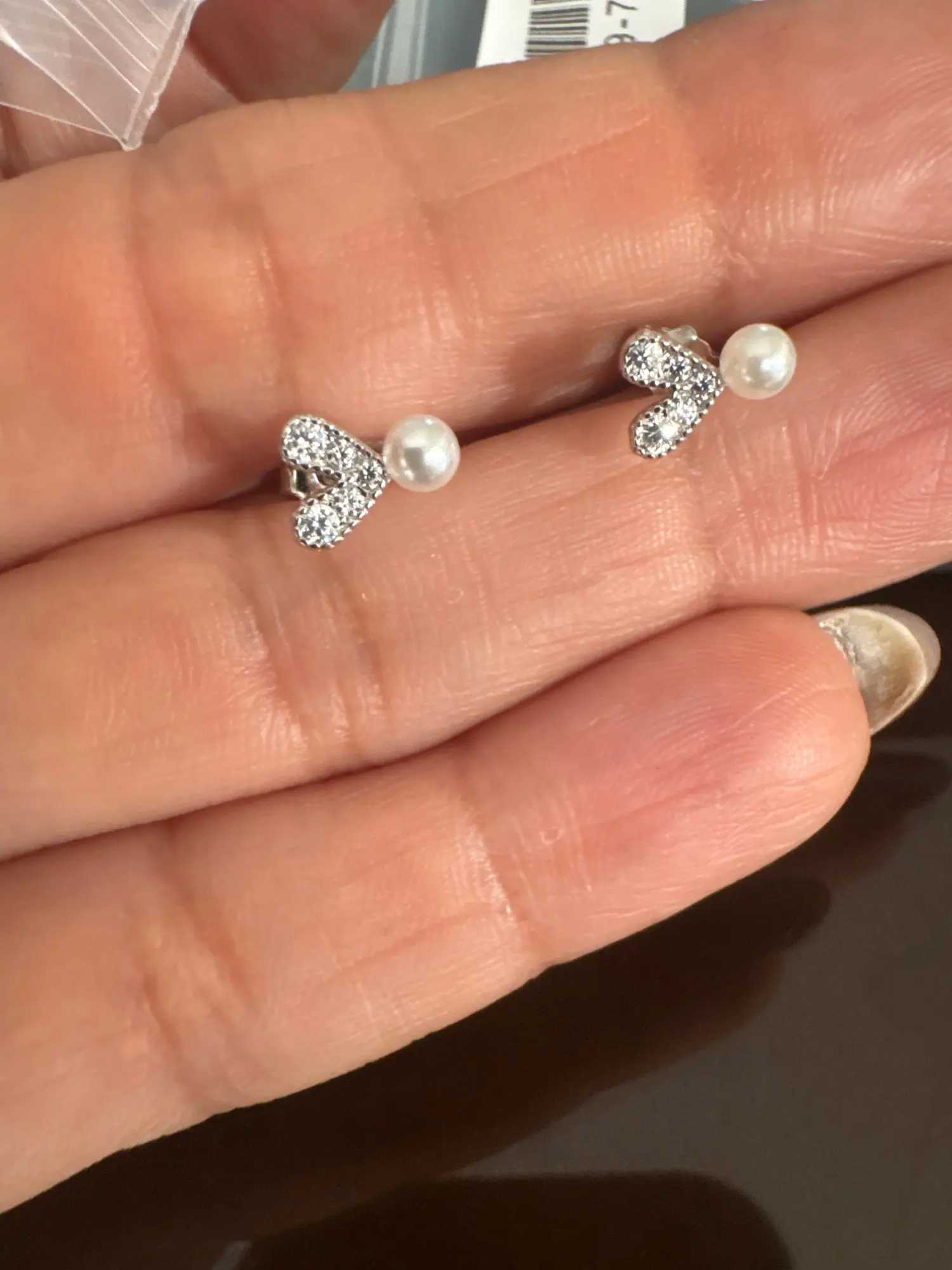 925 Sterling Silver Elegant Synthetic Pearl Earrings Dazzling Heart Clear CZ Stud Earrings for Women Fine Jewelry