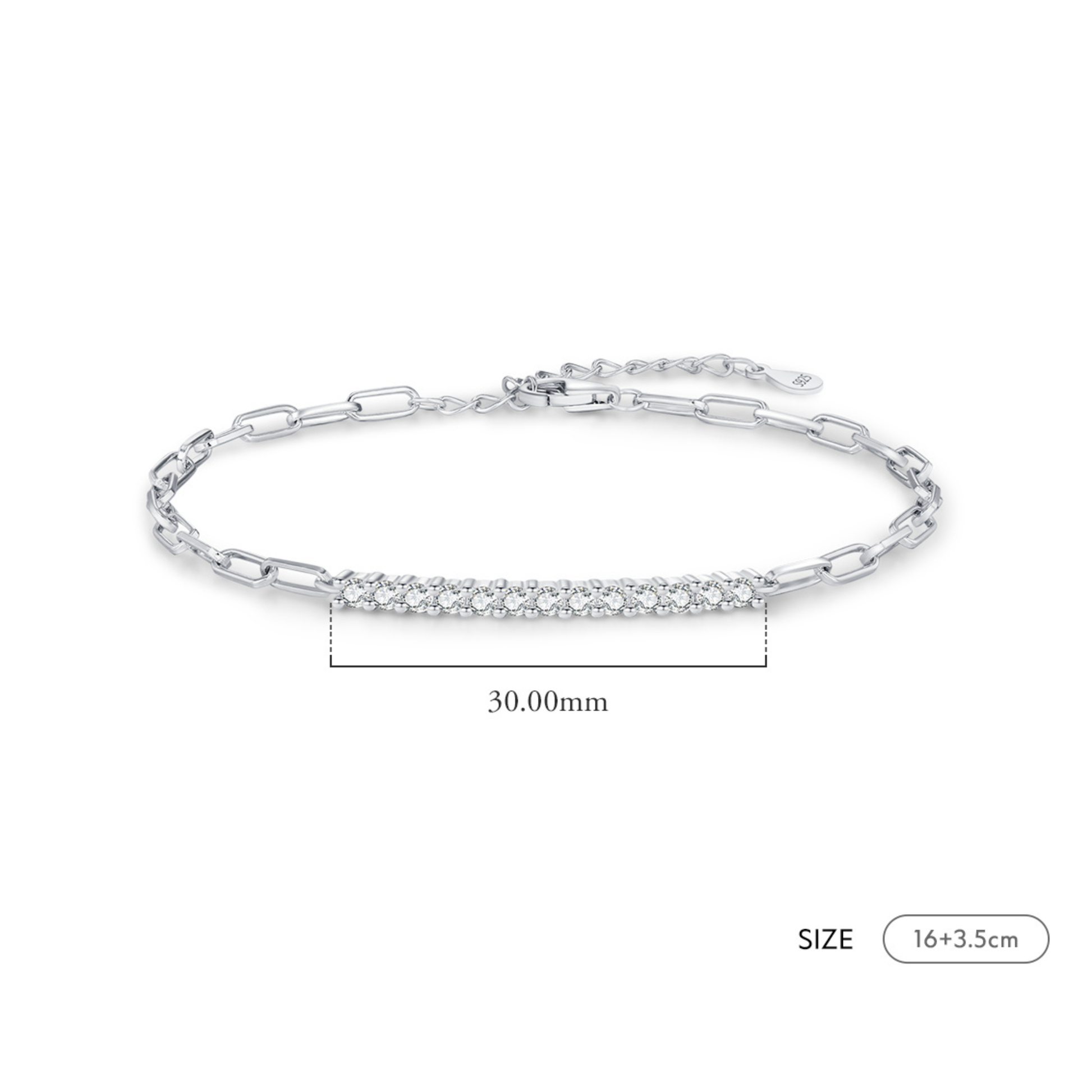 Shine with sophistication wearing the Sparkling D Color Moissanite Bracelet, crafted from genuine 925 Sterling Silver. This elegant chain and link design features premium lab-created D color moissanite stones that deliver exceptional diamond-like brilliance. The secure lock detail adds a modern touch, making it perfect for stacking or wearing solo. Packaged in a beautiful gift box, it’s the ideal accessory for parties, anniversaries, or daily elegance.