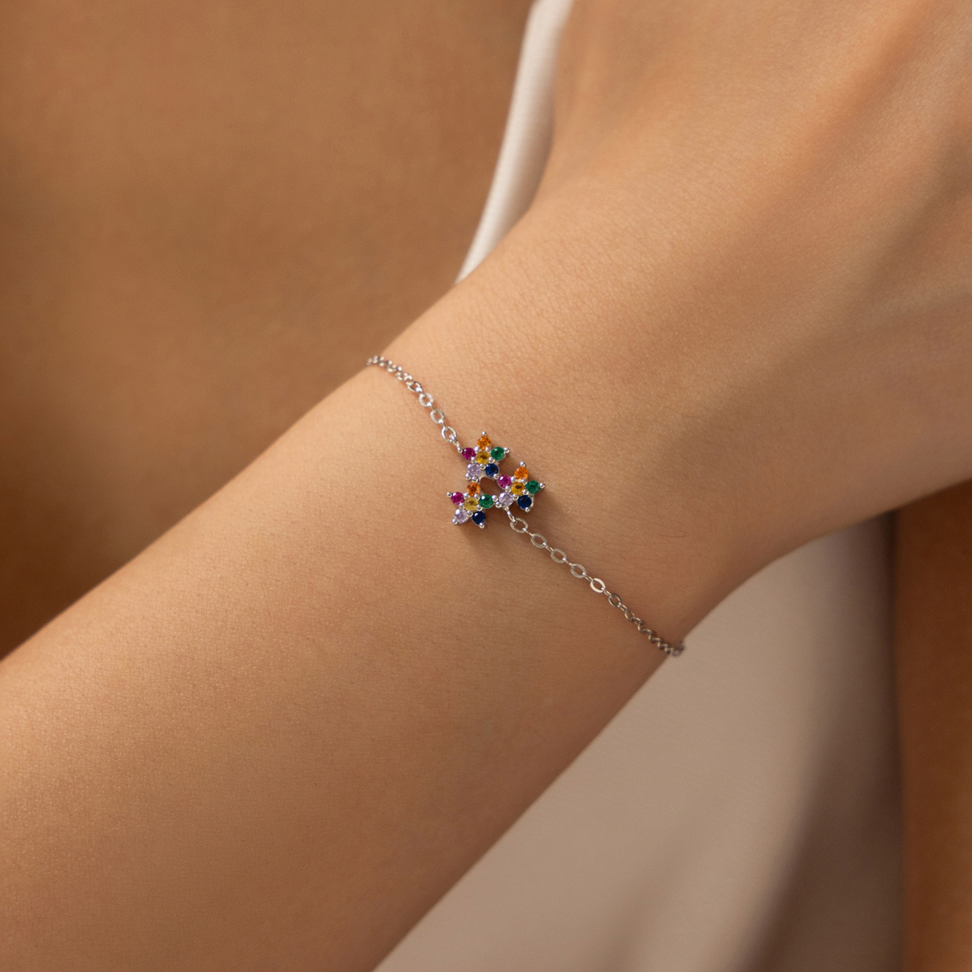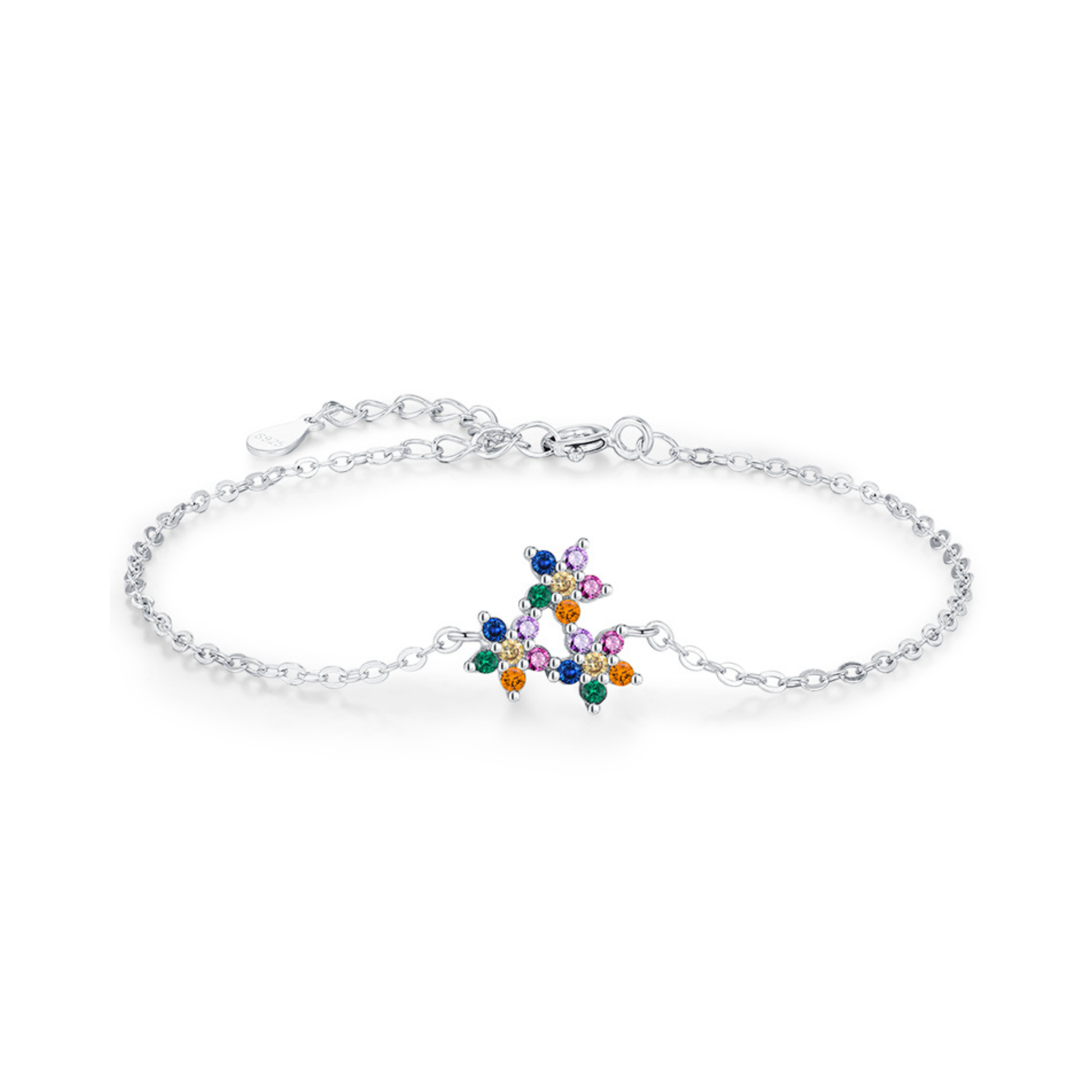 925 Sterling Silver Rainbow Zirconia Three Flowers Bracelet