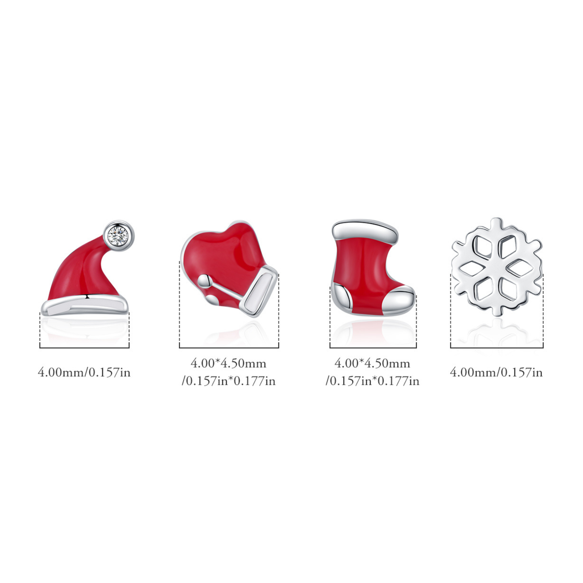 This adorable 4 piece earrings set adds a cute winter theme to your style. You enjoy four tiny shapes, a hat, a glove, a shoe and a snowflake. Each stud shines with a clean modern look. The sterling silver keeps them safe for your ears and comfortable for daily wear. You can wear them as a matching pair or mix them for a playful asymmetric style. The set makes a lovely Christmas gift for someone who loves unique jewelry.