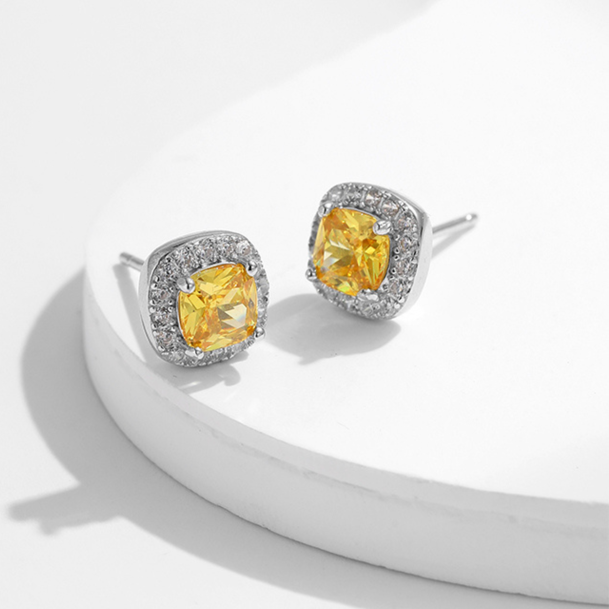 These earrings bring you a bright and classic shine. The yellow cubic zirconia stones add a warm sparkle that enhances your wedding or special occasion look. You enjoy a clean square design that feels elegant and timeless. The platinum plated finish offers a smooth surface that keeps your style refined. They make a beautiful gift for someone you love.